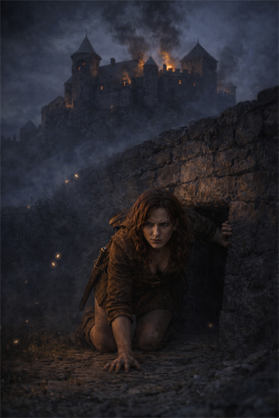 V okolí východu z chodby je naštěstí klid, Poučena z předchozí zkušenosti Josefina přikrčena v jejím ústí chvíli čeká a pozorně sleduje okolí. Když si je jista, že tu žádné nebezpečí nehrozí, vylézá opatrně do noci. Na kopci se na Dubenecké tvrzi objevily první jazyky ohně a husté chomáče dýmu. Vypadá to, že útočníci dosáhli svého a nyní chtějí zahladit všechny stopy zapálením tvrze.