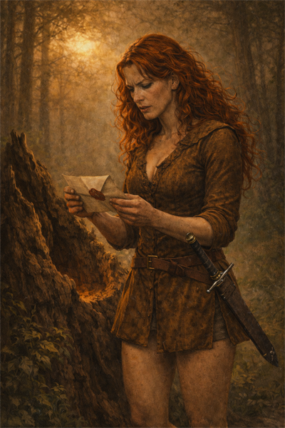 Nyní však musí najít dopis, o kterém Jeroným mluvil. Všude kolem leželo nepřeberné množství vyvrácených stromů i pařezů a úkol najít zde dopis se zdál téměř neproveditelný. Chvíli bezradně přecházela a pátrala očima po zemi, až si nakonec všimla krůpějí krve, které se tu a tam objevovaly v podrostu.